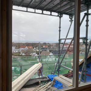 Vi har tagit lite bilder som visar utblickar från balkonger och loftgångar på vån 4. Byggnadsställningen skymmer havsutsikten lite, men bilderna visar den härliga utsikt man kommer att få!
